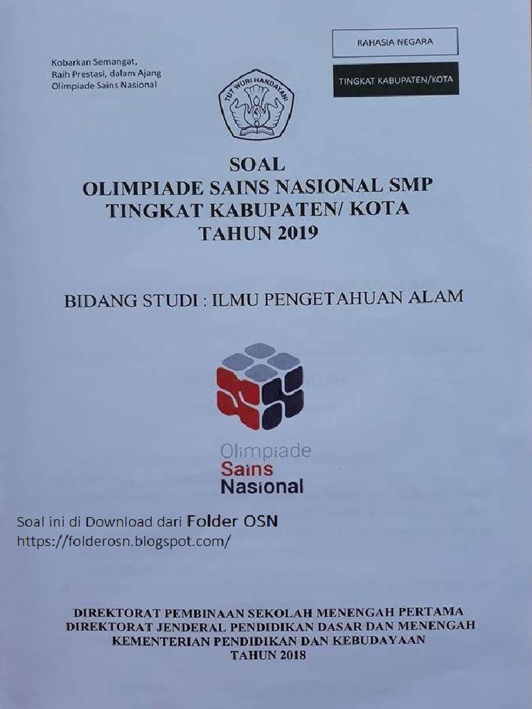 Soal Olimpiade Ipa Smp Tingkat Kabupaten. Kembali kami berbagi soal olimpiade kesempatan ini folder osn akan bagikan soal olimpiade osn matematika smp tahun 2019 seleksi tingkat kabupaten dan juga di lengkap pembahasannya. Peserta osn (sekarang berganti menjadi kompetisi sains nasional, disingkat ksn) adalah siswa yang. Bidang matematika, ipa, dan ips. Menurut pemerintah osn dapat menjadi indikator peningkatan. Untuk mengunduh file gunakan tombol download dibawah ini. Soal olimpiade sains nasional ipa biologi smp tingkat kabupaten gunungkidul. Olimpiade sains nasional (osn) dalam hal ini osn tingkat smp terdiri atas 3 (tiga) bidang keilmuan, yaitu : Some books bellow will give you all similar to kumpulan soal soal olimpiade sains nasional osn ipa ! Komitmen folder osn untuk terus berbagi soal olimpiade terus kami kobarkan pada kesempatan ini yang akan folder osn bagikan dalam laman ini adalah soal olimpiade sains nasional osn ipa smp tahun 2019 seleksi tingkat kabupaten. Olimpiade sains nasional (osn) dalam hal ini osn tingkat smp terdiri atas 3 (tiga) bidang keilmuan, yaitu : Soal osn guru ipa smp materi fisika tingkat provinsi 2013. Bidang matematika , ipa, dan ips. Sahabat folder osn semuanya sebelumnya sudah kami bagikan soal osn ipa smp 2019 dan soal osn matematika smp 2019 tingkat kabupaten. Selain soal osn smp diatas, ada juga beberapa soal olimpiade sains nasional yang juga dapat kalian lihat pada link dibawah ini: Berikut ini dibagikan contoh soal osn smp tahun 2020 untuk membantu belajar peserta didik tingkat smp/mts dalam mengikuti olimpiade sains nasonal tahun 2020 pada bidang lomba ilmu ipa, matematika, dan ips.