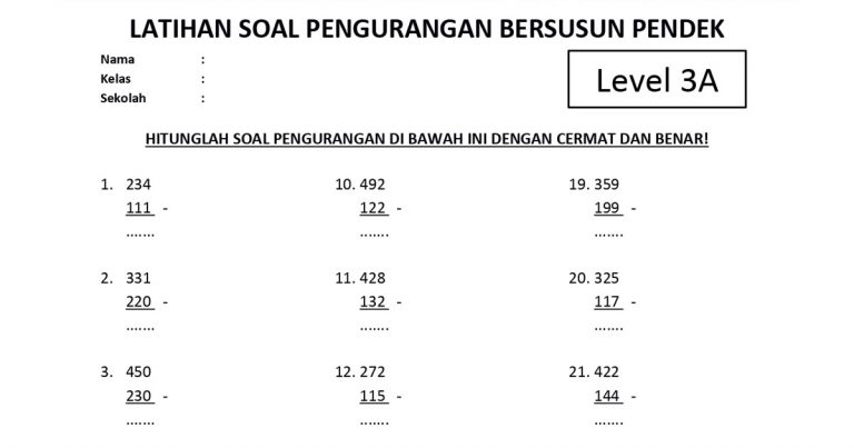 Soal Pengurangan Bersusun. Namun pada kasus tertentu misalnya pengurangan bilangan yang cukup besar, kadang menuntut kita agar menyelesaikannya dengan cara pengurangan susun ke bawah. Siswa kelas 1 diharapkan mampu memahami pengetahuan faktual dengan cara mengamati dan menanya. Semoga latihan soal ini bisa. Soal matematika kelas 3 sd. Assalaamu alaikum sahabat gurukatro, sebenarnya operasi hitung pengurangan bilangan bulat tergolong proses yang sangat mudah dikerjakan. Matematika kamis, 12 agustus 2021 by christine11: Soal matematika kelas 1 sd penjumlahan dan pengurangan bersusun. Konsep pembagian adalah pengurangan berulang oleh bilangan pembagi sampai sisanya 0. Demikian pembahasan mengenai soal cerita penjumlahan dan pengurangan bilangan ribuan kelas 3 sd. Soal ulangan harian · 4. Soal pengurangan bersusun pendek tingkat 2 c. Maka dari itu wawasan ini menjadi ilmu dasar yang wajib dipahami oleh semua orang. Terimakasih semoga ilmu yang baru saja di dapat bisa bermanfaat dan berguna. Soal cerita matematika kelas 2 sd mencakup soal bilangan cacah, penjumlahan, pengurangan bersusun, pengukuran satuan panjang, satuan berat,. Soal soal ini di dapat dari buku pelajaran matematika untuk sekolah dasar kelas ii penekanan pada.