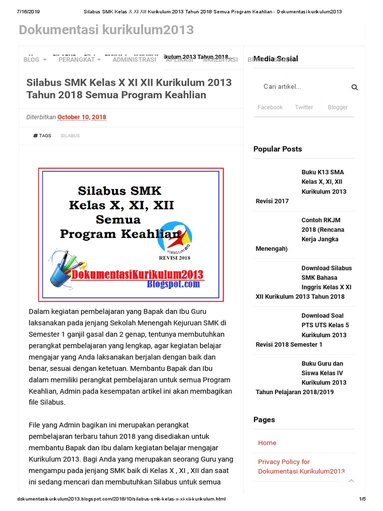 Memaksimalkan kegiatan pembelajaran pada jenjang smp dan mts terutama pada mata pelajaran matematika, tentunya kita sebagai seorang guru harus memiliki perangkat pembelajaran yang lengkap dan untuk kurikulum 2013 file yang digunakan haruslah revisi. Nah bagi bapak/ibu guru yang mengajar pada tingkat satuan pendidikan smk/ma/smk biasanya anda. Silabus tematik sd kelas 3 semester 1 dan 2. Dalam kurikulum 2006, kegiatan pengembangan silabus merupakan kewenangan satuan pendidikan, namun dalam kurikulum 2013 kegiatan pengembangan silabus beralih menjadi kewenangan pemerintah,. Sebelum admin membagikan link untuk silabus ini, alangkah baiknya rekan guru membaca dulu pendahuluan yang diberikan oleh kementrian pendidikan dan. Silabus smp/mts kurikulum 2013 revisi 2017 silabus adalah rencana pembelajaran pada suatu dan/atau kelompok mata pelajaran/tema tertentu yang mencakup standar kompetensi , kompetensi dasar, materi pembelajaran, kegiatan pembelajaran, indikator pencapaian kompetensi, penilaian, alokasi waktu, dan sumber belajar. Silabus tematik sd kelas 1 semester 1 dan 2. Download silabus smp kurikulum 2013 revisi tahun 2017. Berikut ini adalah silabus pendidikan agama islam dan budi pekerti sma/ma/smk/mak kurikulum 2013 revisi 2016.