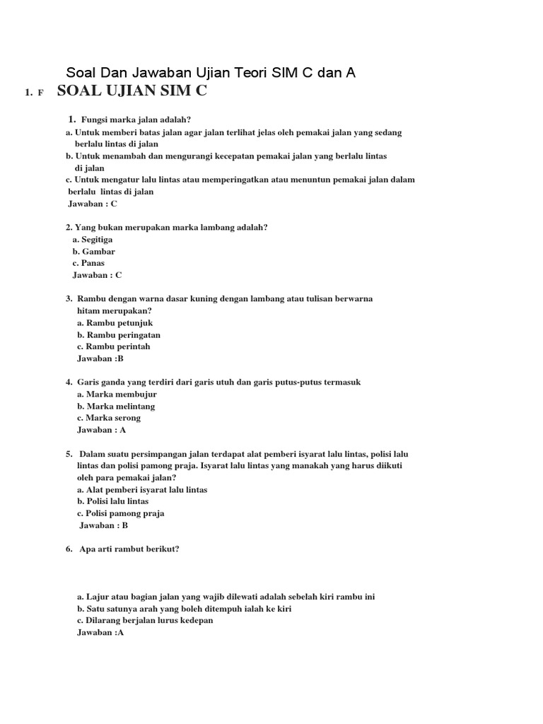 Sayangnya, tidak sedikit pemohon yang tidak lulus baik ketika mengikuti uji teori atau praktik. 1.4.1 pilih menggunakan motor sendiri. Situasi berlatih menggunakan aplikasi gadget itu kurang lebihnya sama dengan mengerjakan soal ujian teori sim menggunakan komputer. Sesuai pengalaman admin beberapa waktu lalu pada saat mengikuti ujian teori kita akan diberi total 30 soal dan harus benar minimal 26, artinya kita diberi toleransi untuk menjawab salah maksimal 4 kali. Hampir sebagian besar polres ataupun satpas sistem aplikasi ujian sim menggunakan komputer. Kumpulan soal ujian teori sim c plus kunci jawaban 2020 100 akurat benar dan lulus tes. Kumpulan contoh soal ujian teori sim c plus kunci jawaban 2021 100 akurat benar dan lulus tes. Word atau pindah ke format pdf lebih baik lagi, dan kunci jawaban silahkan cari sendiri karena pasti anda. Ujian teori sim c yang digunakan saat ini dinamakan audio visual integrated system (avis).
