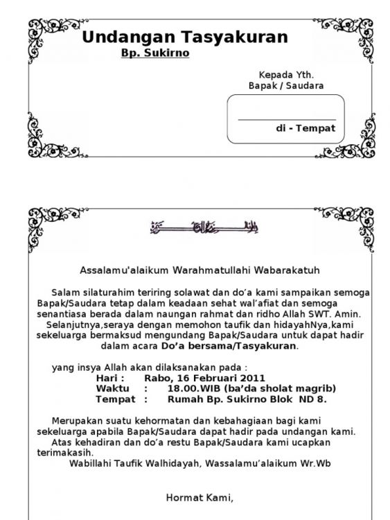Undangan Rapat Bahasa Jawa. Contoh layang undangan bahasa jawa. 37 contoh surat undangan osis perusahaan sekolah rt dan desa. Grenengane pustakawan contoh surat undangan karang taruna bahasa jawa surat undangan bahasa tolong buatkan sebuah surat undangan rapat. Undangan aqiqoh (bahasa jawa) scribd. Contoh surat undangan tahlil kematian format word untuk orang meninggal forty one hundred hari tahlil word doc bahasa jawa 100 hari 1 tahun dan yasin pdf a thousand orang meninggal tahlilan ke 40 3 aqiqah a4 akbar acara. Contoh surat undangan syukuran 7 bulan kehamilan harga undangan tas kipas unik murah bekasi. Contoh pidato perpisahan bahasa jawa kelas 9 sing. Sebelumnya penulis ucapkan terimakasih karena sobat semuanya masih setia mengikuti update blog ini, dan bagi sobat yang belum mengikuti blog diharapkan menekan follow atau subscribe lewat email, agar dapat selalu mendapatkan update blog. Contoh undangan rapat panitia pernikahan bahasa jawa terbaru gratis. Contoh surat undangan rapat basa jawa have an image associated with the other.contoh surat undangan rapat basa jawa in addition, it will include a picture of a kind that may be observed in the gallery of contoh surat undangan rapat basa jawa. Beberapa contoh surat undangan rapat basa jawa yang baik 2019. Contoh surat undangan tahlil 40, 100, 1000 hari (haul). 15 desain grafis paling spektakuler; Komentar sebelumnya (4) 22 feb 2015 11:12. 20 gambar keren contoh undangan tidak resmi desain undanganku.